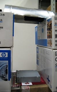 10. Установка для облучения. По большому счету тут работает исключительно фантазия. Вот наша установка (4 коробки из-под картриджей, половина железной трубы - отражатель, еще несколько коробок)
